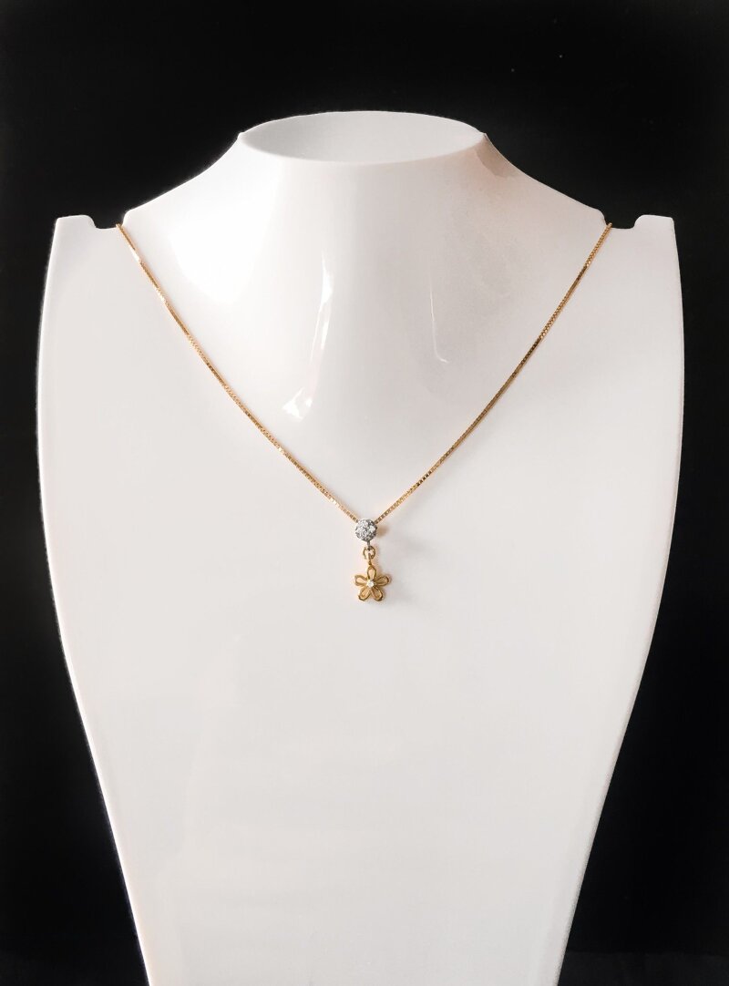 - Incastonato nel fiore n°1 zirrcone e nella parte tonda in oro bianco n°4 zirconi